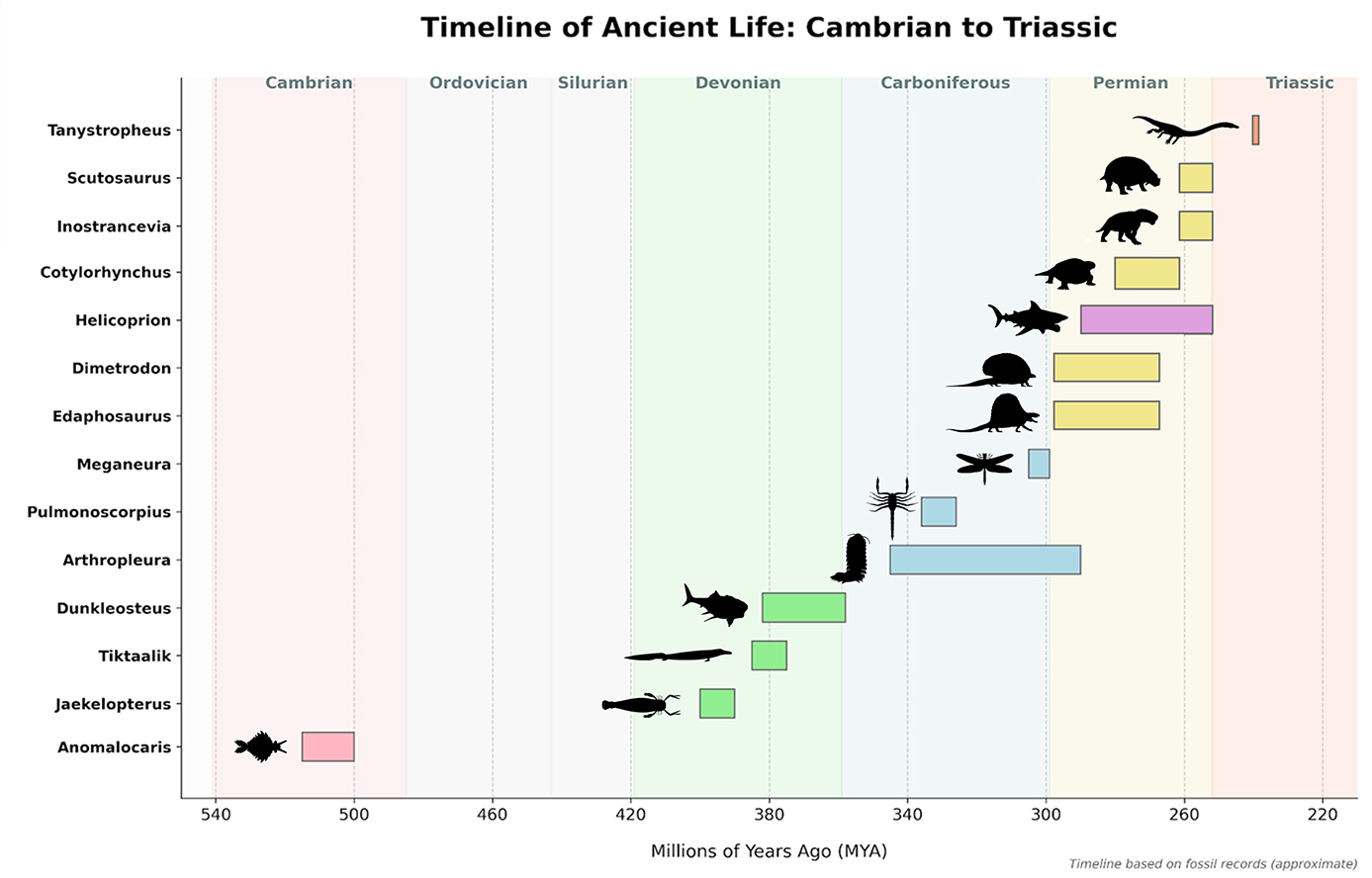 Timeline of prehistoric life before Dinosaurs (Cambrian to Triassic)